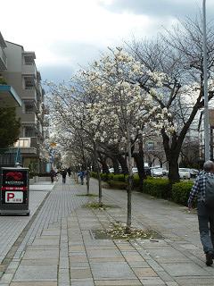 本牧に来ました。木蓮・ハクモクレンの並木路になりました。