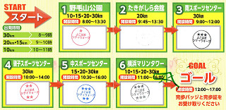 スタート前に頂いた地図とチェック・シート 今年は「2番目」スタンプはコ−ス外で無し。チェックマークはゴールの印。完歩賞をもらったマーク。