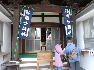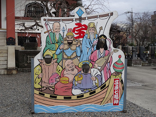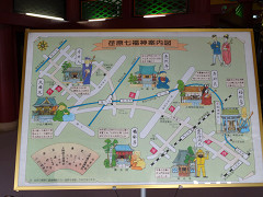 本堂前の顔出し七福・本堂・本堂の中にあった七福神案内図 |