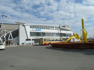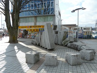 改札前を通り南口へ、 震災ではありません。紛らわしいモニュメント