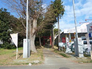 そのまま進むとユニクロ前の信号に着きます。渡らずに左へ、見過ごしそうな尾尻八幡神社入り口 11:53