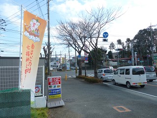 正面が福禄寿と亀の「太岳院」です。右へ曲がります。