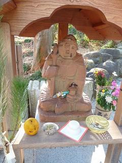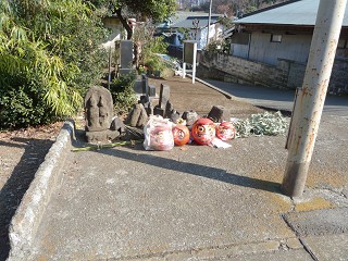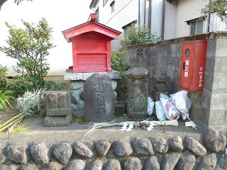 外路に直面の寺社標石にスタンプが置かれていて、その脇に福禄寿 スタートの時忘れたGPSのSWオン、±4。11:30 |