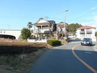 尾尻隋道を抜けて左斜めに進むと、秦野赤十字病院が見えます。 |