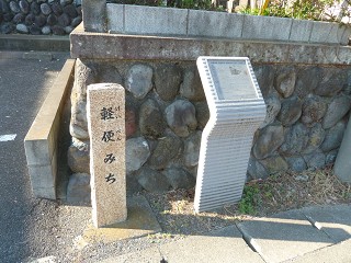 隣の墓地の角に「軽便みち」の石碑がある。