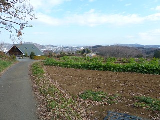 尾根道歩きもここで終わり。向山配水場を右に下ります。左は牛舎です。