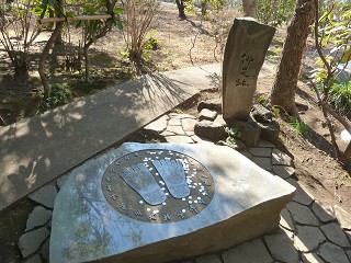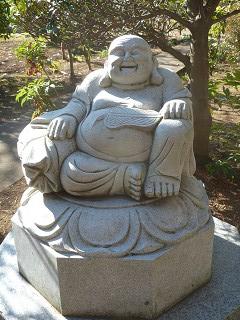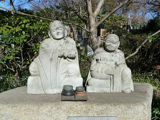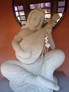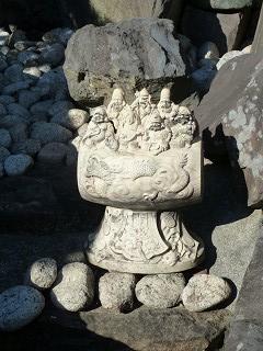 弁天堂前に打ち出の小槌に乗った七福神の石像がありました。 |