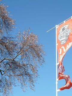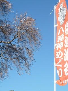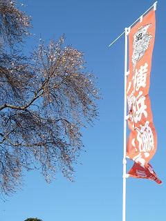 寒桜でしょうか。日当たりが良いので咲き始めていました。 でも、風は強かった。