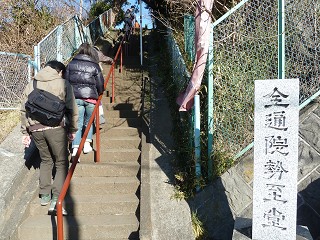 環状4号線の歩道橋を渡ると、「全通院聖至堂」 13:25 強行突破が四人。