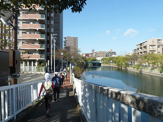 大岡川ぞいを遡ります8:31 蒔田公園を抜けます |