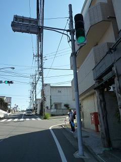 信号にかからない右側歩道を進むべきだった。