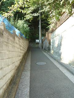 富岡東で歩道橋を渡り、反対側へ 10:14 じきに左折し、青砥坂を喘いで上る |